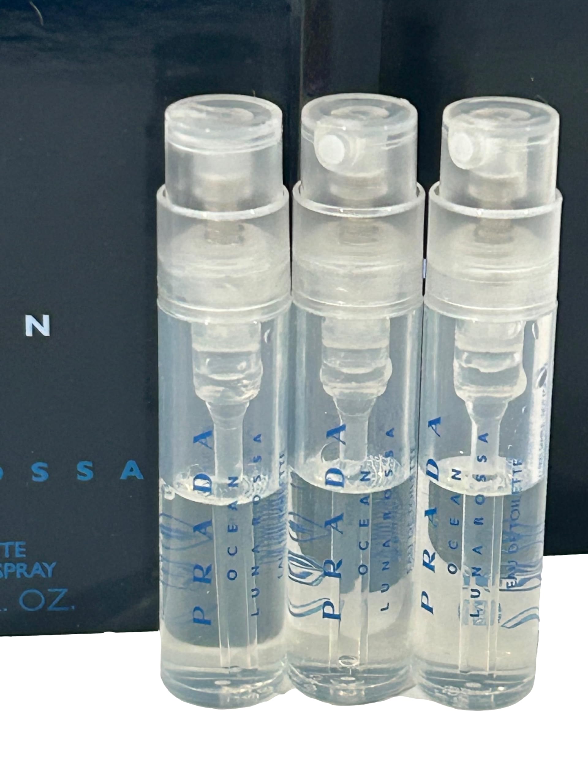 Details: The composition opens with bright citrus notes of bergamot, which emphasize the aroma of lavender and sage with a clean, fresh character. The heart of the fragrance pulsates with elegant and creamy accords of iris and saffron. The whole is based on notes of vetiver, patchouli and musk, which create an expressive, masculine combination. PRADA Men’s Luna Rossa Ocean EDT Spray 0.04 oz, Pack of 3.